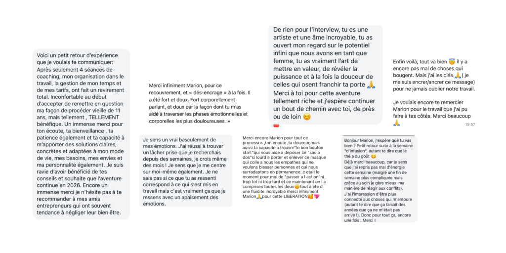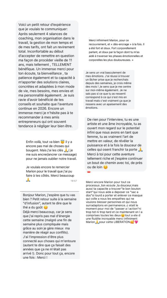 Pendant cette dernière journée, nous allons ancrer une nouvelle manière de fonctionner pour que tu ne retombes plus dans tes anciens schémas et poser ensemble des repères simples pour que tu puisses être consciente et surtout autonome, même durant les périodes chaotiques